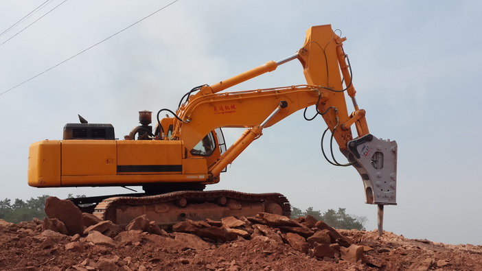 現(xiàn)代455型短臂配古河175型炮機正在重慶施工作業(yè)